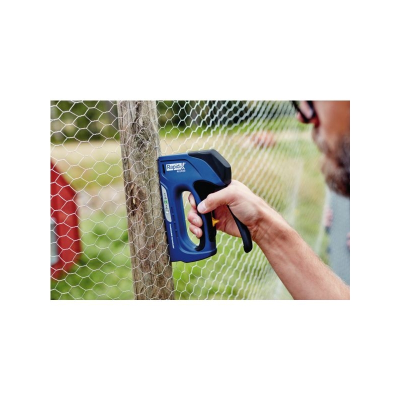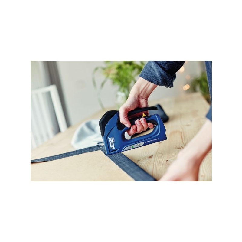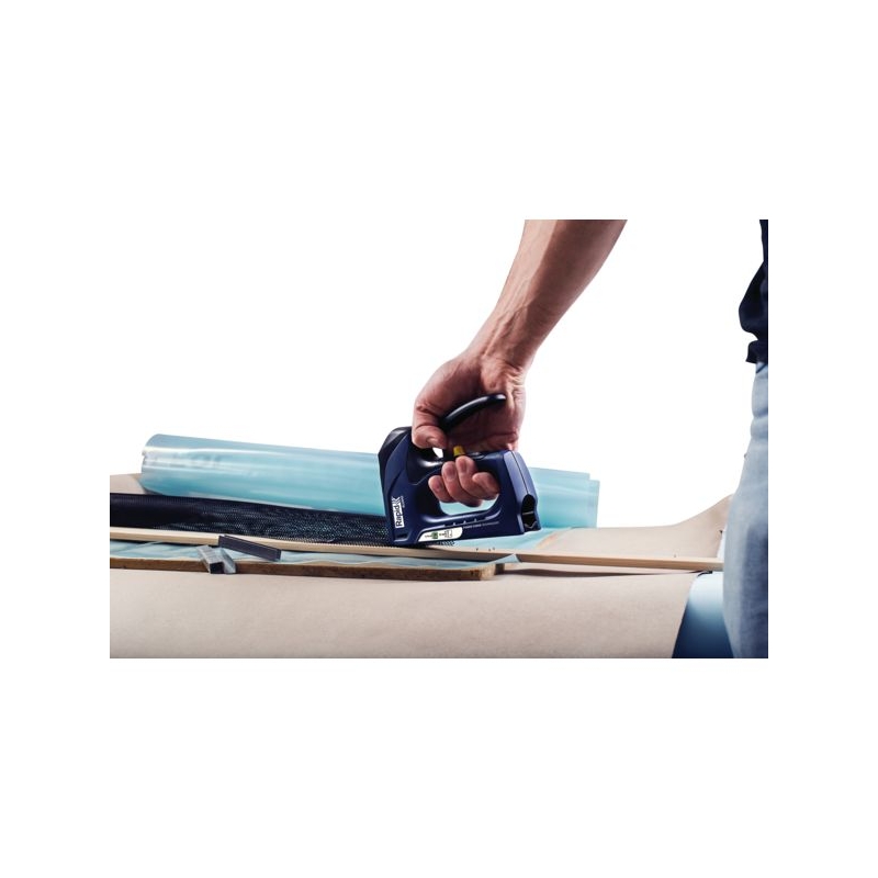 Idéale pour la pose de matériaux isolants, moquette. Corps en aluminium. Chargement par le dessous. Utilise des agrafes n°140 de 6 à 14 mm et des pointes n°8 de 15 mm. Chargeur : 84 agrafes/90 pointes Poids : 600 g