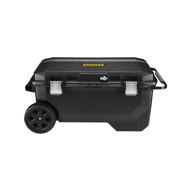 En polypropylène. Attaches métalliques anticorrosion et serrure à clés. Roues grand diamètre tout terrain, poignée télescopique bi-matière. Rainure en V pour des découpes d'appoint. Nombreux rangements verticaux et plateau porte-outils intégré. Etanche à l'eau et à la poussière (IP54). Volume utile : 113 l Dimensions : 910 x 520 x 430 mm. Livré sans outils.