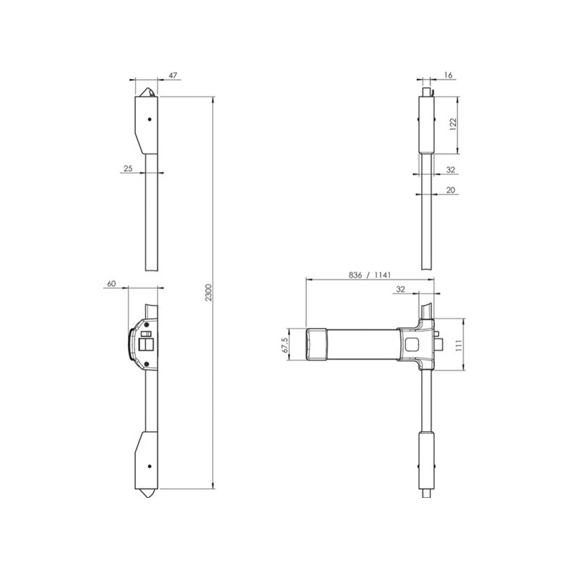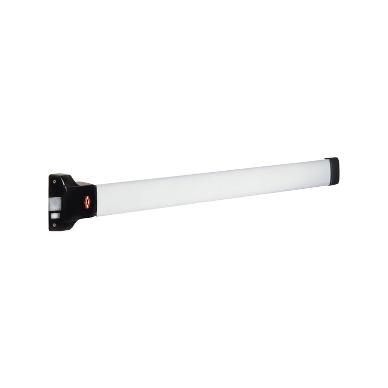 Fermeture antipanique à barre d'enfoncement. Réversible. Ouverture sous faible poussée. Résistance aux tentatives d'ouverture extérieure (contre-pêne de sécurité). Très haute résistance à la corrosion 240 h (brouillard salin). Coupe-feu, pare-flamme (CF/PF) 2 h. Répond à la norme EN 1125. Largeur maxi. : 1141 mm Conditionnement : boite 80% recyclable.