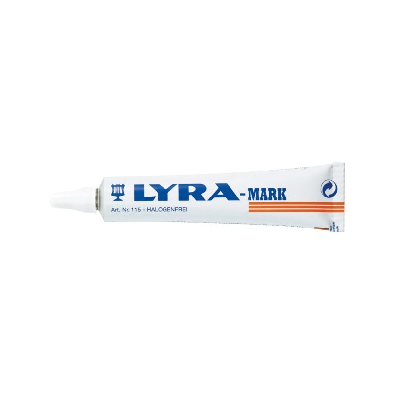 Tube marqueur avec de la peinture liquide. Sèche en quelques minutes, permanent, contenance 50 ml. Pour marquer sur des surfaces métalliques (même huileuses), bois, plastique, caoutchouc, cuir, céramique. Conditionnement : boîte de 10
