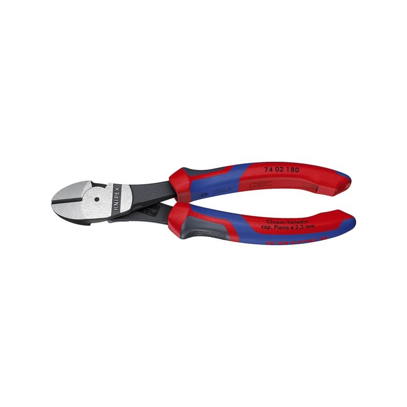 Pour tout type de fil y compris la corde à piano. Tranchants de précision trempés par induction. Axe rigide forgé, très résistant. Poignées ergonomiques gainées bi-matière. Capacité de coupe : fil dur Ø 2,2 mm Longueur : 180 mm